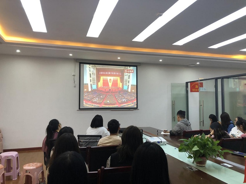 酉州實(shí)業(yè)集團(tuán)組織收聽收看抗擊新冠疫情表彰大會(huì)(張渝涵 攝)