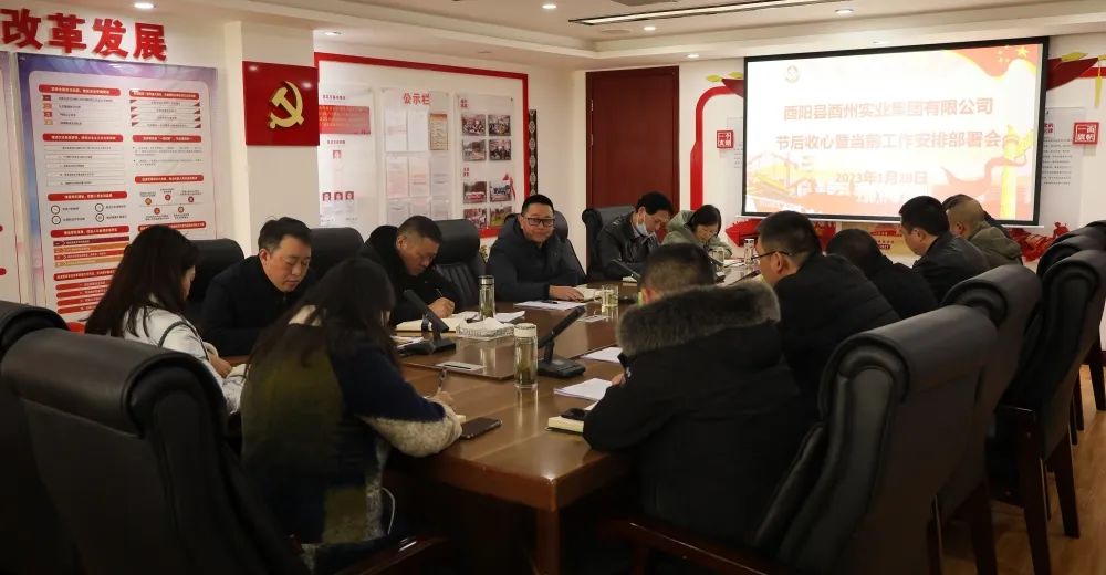 1月28日下午,春節(jié)后上班第一天,酉州實(shí)業(yè)集團(tuán)組織召開(kāi)節(jié)后收心暨當(dāng)前工作安排部署會(huì)。會(huì)議由集團(tuán)董事長(zhǎng)張宗銀主持,全體班子成員、各部室(子公司)主要負(fù)責(zé)人參加。會(huì)議專題傳達(dá)學(xué)習(xí)了重慶市建設(shè)成渝地區(qū)雙城經(jīng)濟(jì)圈工作推進(jìn)大會(huì)精神,立足酉州實(shí)業(yè)工作實(shí)際就如何更快更好在2023年工作中起好步、開(kāi)好局作了具體工作安排部署。